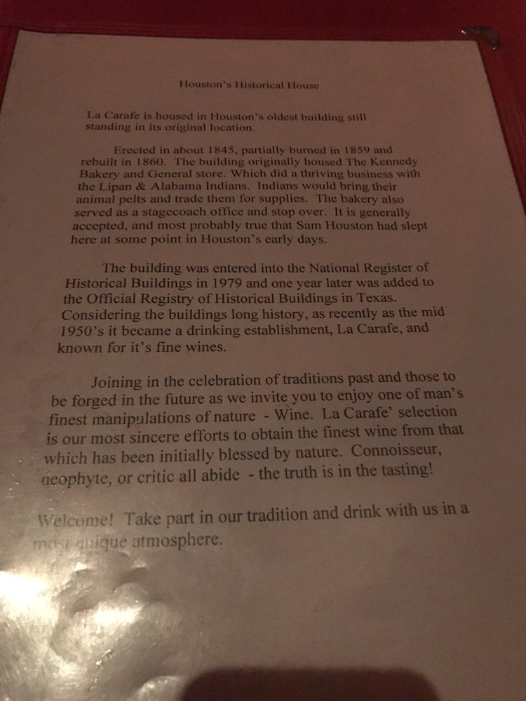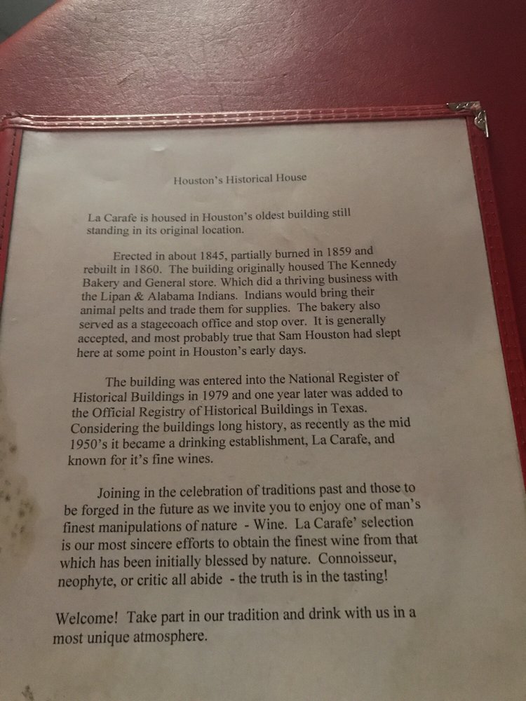 La Carafe, located at 813 Congress St in Houston, TX, is a hidden gem that offers a unique and intimate dining experience. This women-owned establishment is known for its casual atmosphere, perfect for both small groups and solo diners. The menu features a curated selection of beer and wine, with happy hour specials to enjoy. Covered outdoor seating, TV, and jukebox add to the charm of this cozy spot. The best nights to visit are Thursday, Friday, and Saturday. With wheelchair accessibility, bike parking, and Wi-Fi available, La Carafe caters to a diverse range of guests. The relaxed ambiance and welcoming staff make it the ideal place for a night out with friends or a romantic date. Don't miss the opportunity to discover this local favorite in the heart of downtown Houston.